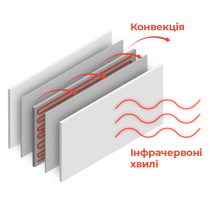 З обігрівачем Sunway ви отримаєте рівномірно прогріте приміщення за рахунок інфрачервоного випромінювання та конвекції (яка утворюється між тильною стороною приладу та стіною, на яку він встановлений)
